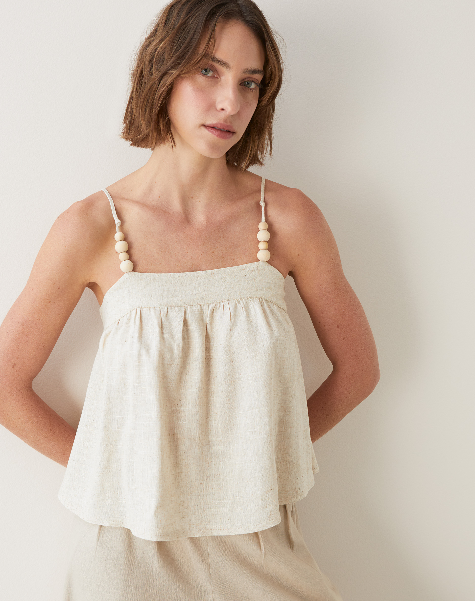 Detalhes da Peça: - Silhueta Evasê - Comprimento: Curto - Regata - Decote Reto - Costas Com Amarração - Sem Forro - Composição: Viscose